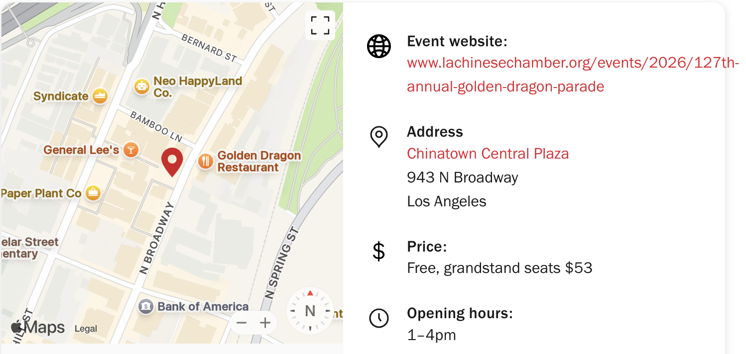 Join in one of L.A.’s oldest traditions at the 127th annual Golden Dragon Parade.